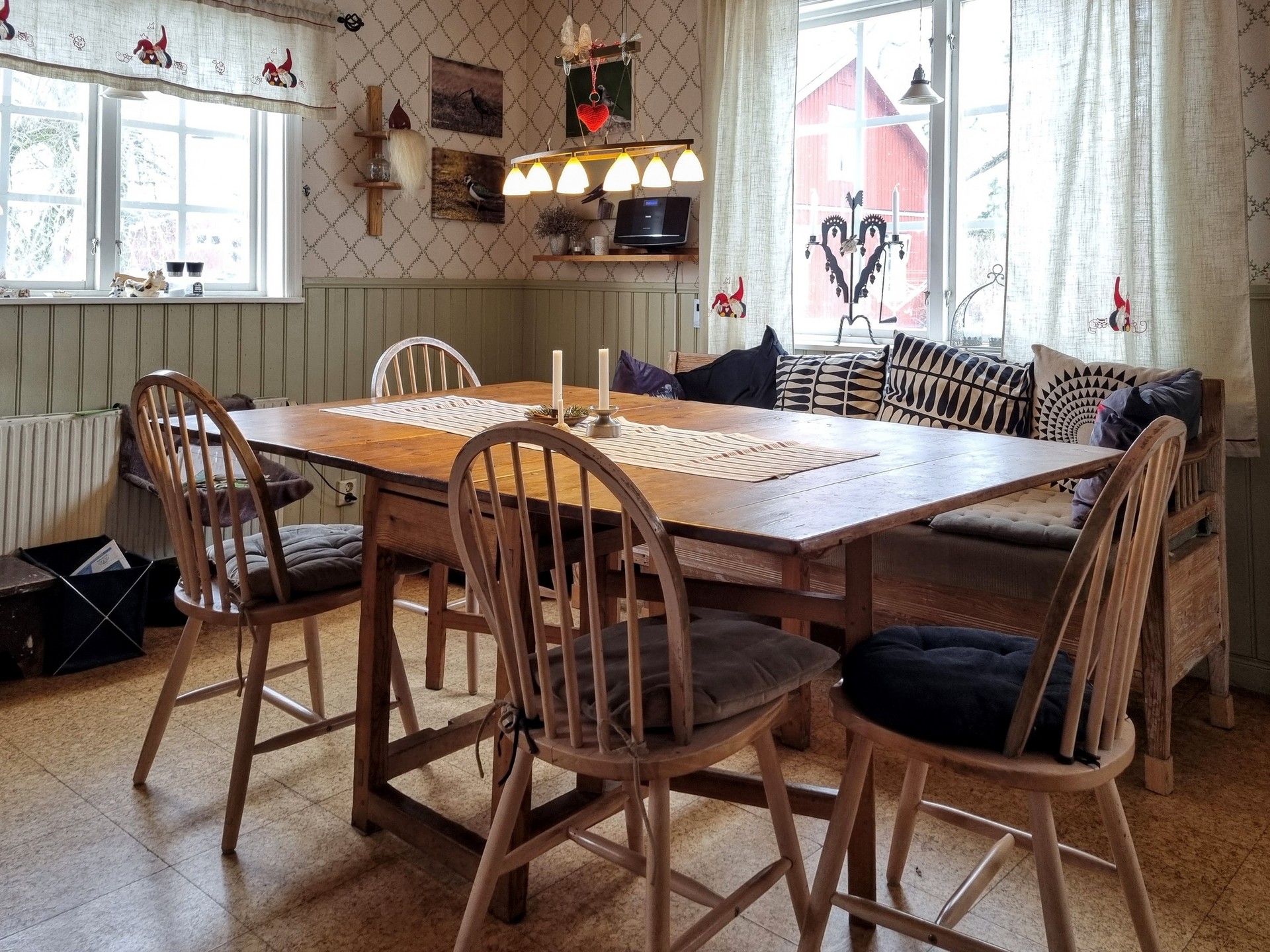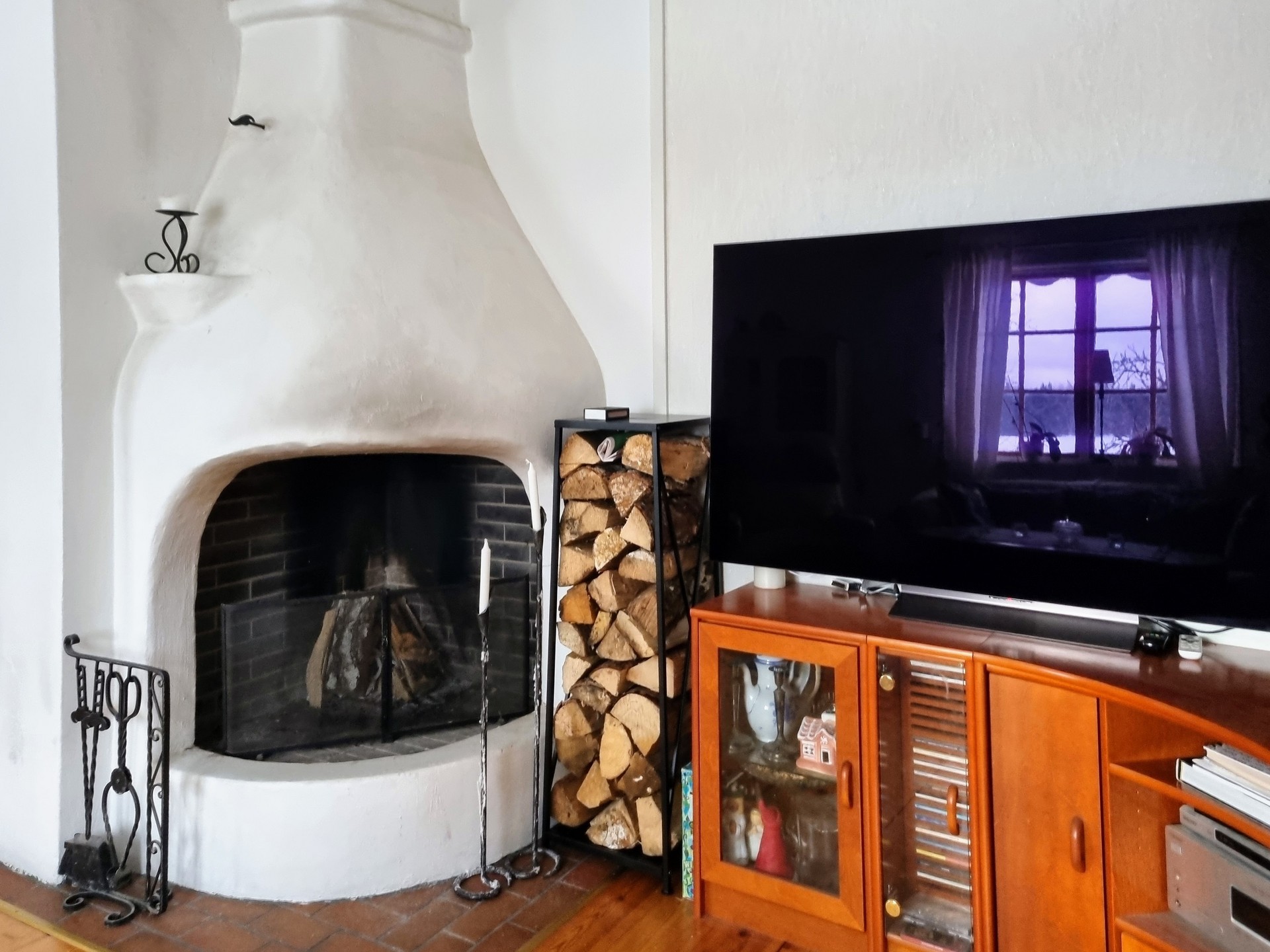Rumsbeskrivning: Nedervåning med hall, fullutrustat kök med elspis, ugn, kyl och frys i fullhöjd, skafferi och vedkamin. Vardagsrum med utgång till altan. Tv-rum och ett sovrum/kontor. Det finns även ett badrum under renovering. Övervåning har en stor möblerbar hall med kamin, fyra sovrum samt ett stort helkaklat badrum med golvvärme, badkar, dusch, wc och handfat i badrumsmöbel. Hela våningsplanet har trägolv.