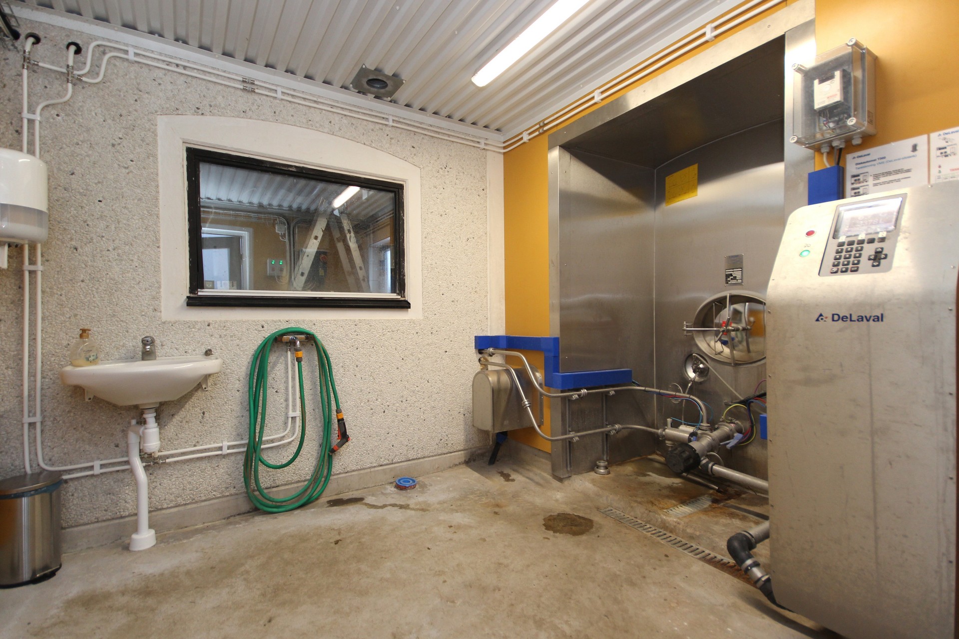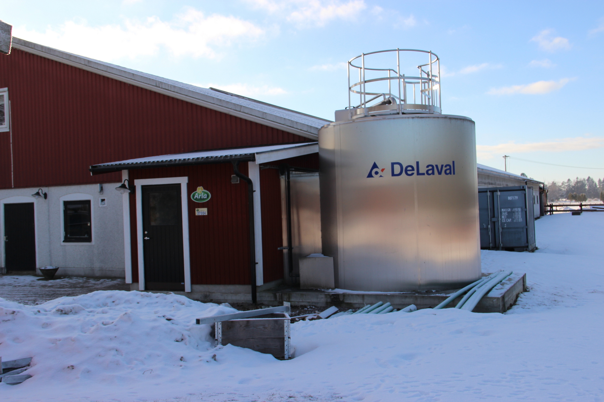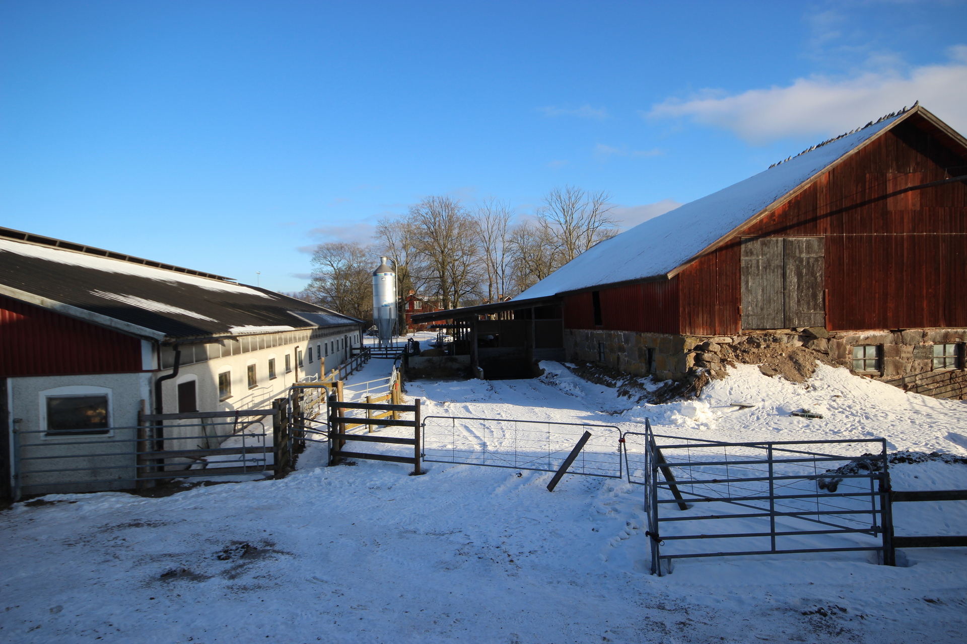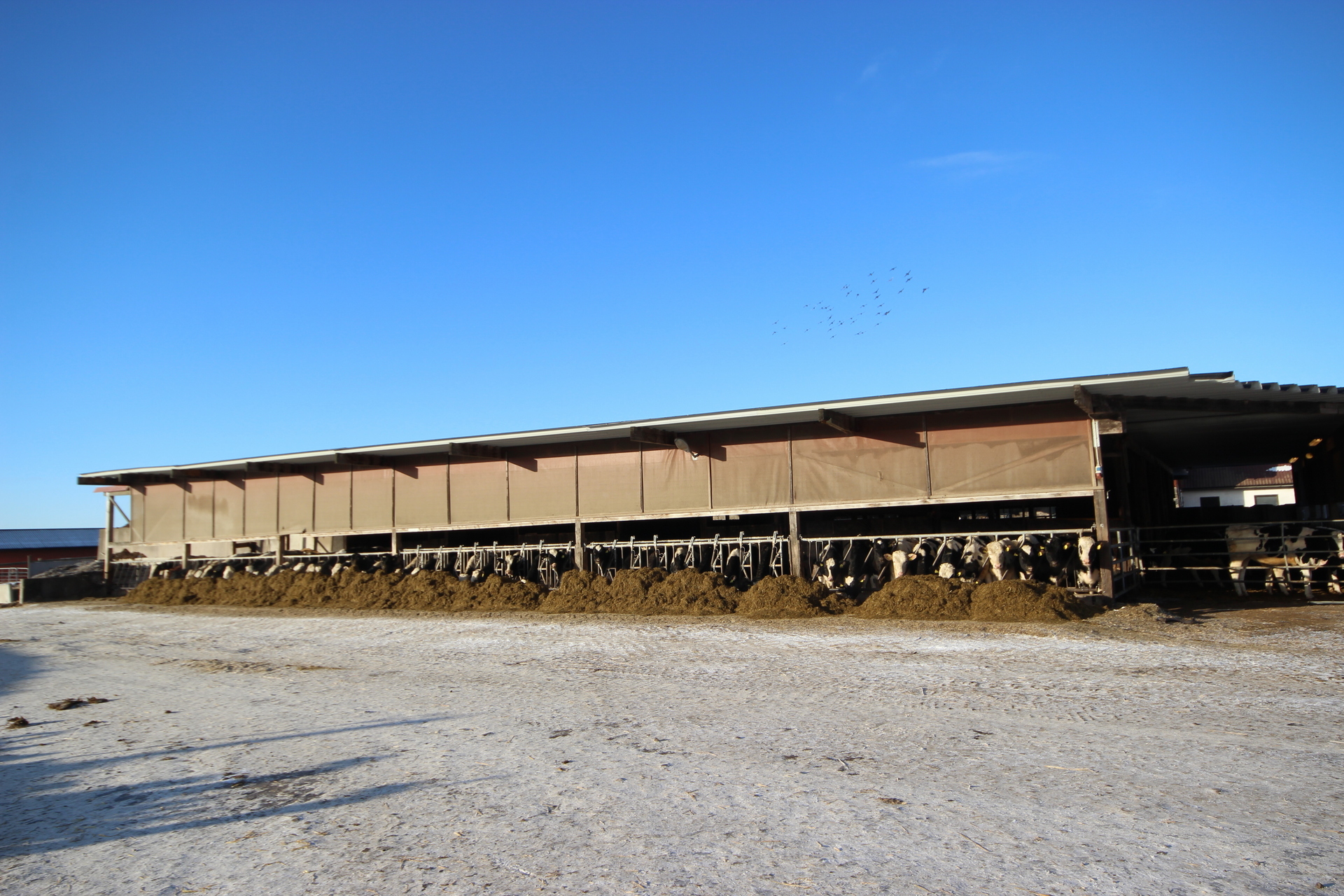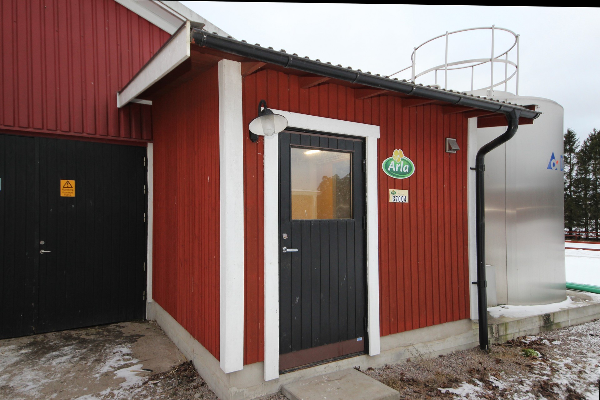 Beskrivning: Byggnad i betong med plåttak. Ligghall med 120 st. liggbås med inredning och madrasser från DeLaval. Ligghallen är delvis ombyggd med nya flexiva båsavskiljare i plast. Utgödsling med öppna skrapgångar till kulvert och pumpbrunn. Tre mjölkningsrobotar från Alfa Laval Två stycken VMS V300 årsmodell 2021 och en med årsmodell 2013. Fullfodersystem med bandtransportör, nockventilation med luftinsläpp vid takfoten. Gårdskontor och inredd övervåning. Mjölkrum med bufferttank och värmeväxlare för värmeåtervinning av mjölken, maskinrum med vacuumpumpar samt kompressorrum, utvändigt i egen byggnad. Nybyggt, år 2021, chaufförsrum intill DeLaval silotank 15 000 l. Intill stallet finns en kraftodersilo Mafa Unik 27 m³. Gödselbrunn i betong samt gödselbassäng med gummiduk, total kapacitet ca 5 000 m³.