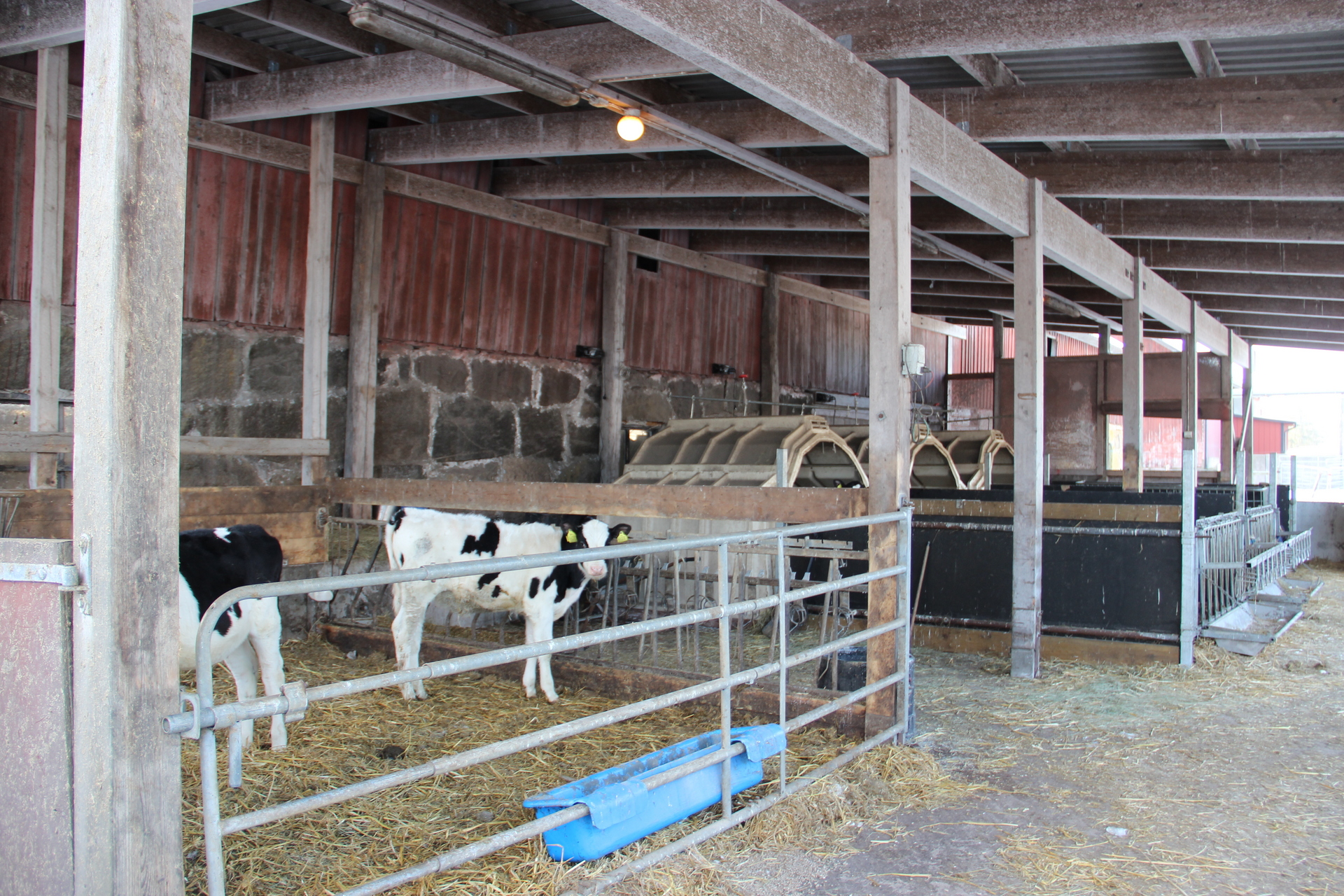 Beskrivning: Byggnad i trä med betonggolv och plåttak. Byggnaden har fyra avdelningar där två avdelningar har ströbädd med skrapgång och två avdelningar har liggbås. Avdelningarna har foderbord med snedgrindar och en avdelning har 12 st fångstgrindar som används vid insemination och när djur skall behandlas. Byggnadsyta är ca 1 100 m².
