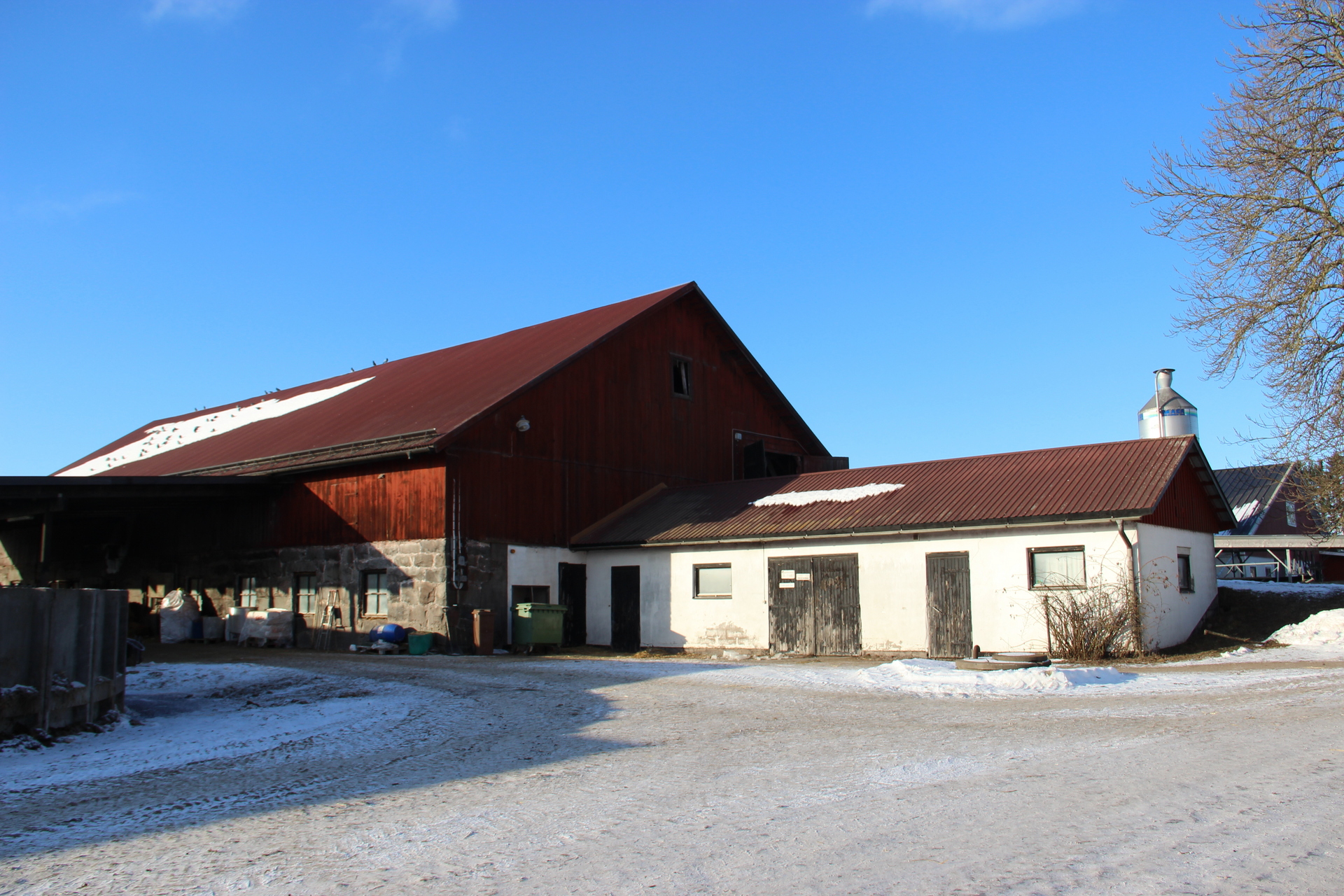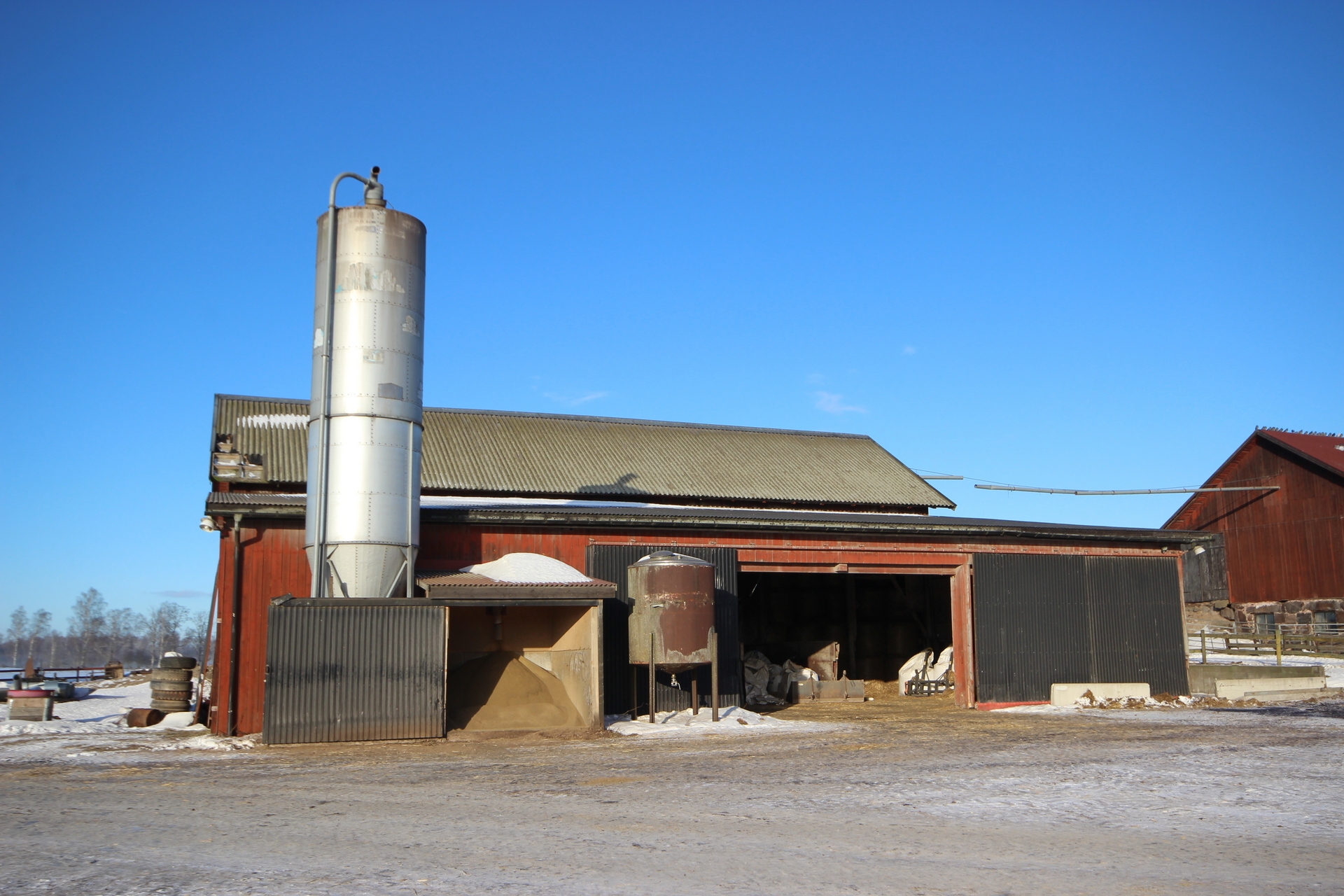 Det finns det en isolerad lagerbyggnad/maskinhall 9 x 16 m och en silo, Twister 400 m³, som ej är uppbyggda och som är till salu som lösöre. För silon finns betongplatta klar för montering.
