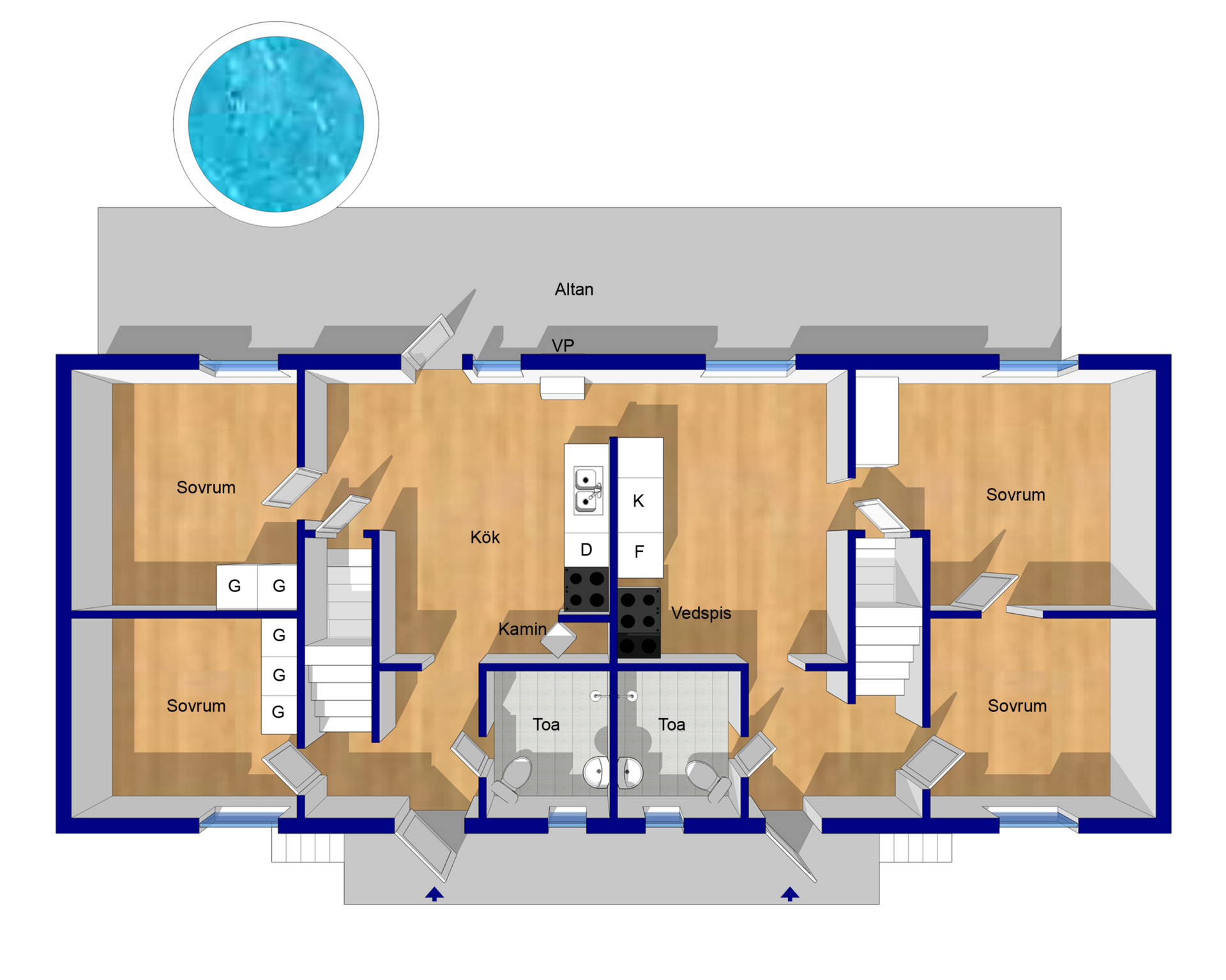 Utförda renoveringar: 2016 övervåning, 2018 altan och pool